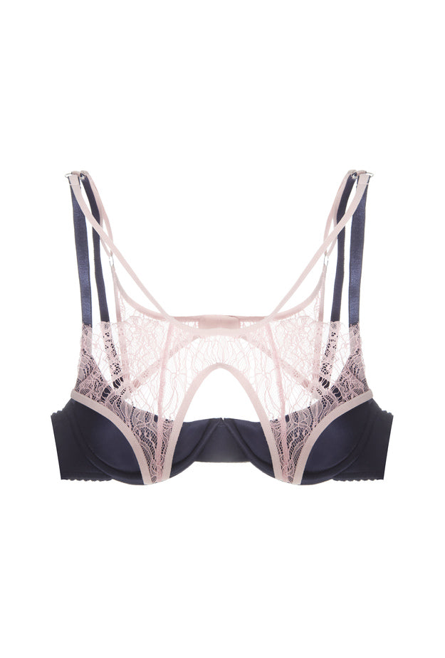 Бюстгальтер "Roséa" від Nomura — це стильна інтерпретація класичної еротичної білизни з акцентом на легкість та жіночність. Гармонійне поєднання насиченого синього та ніжного рожевого кольорів створює чуттєву естетику.