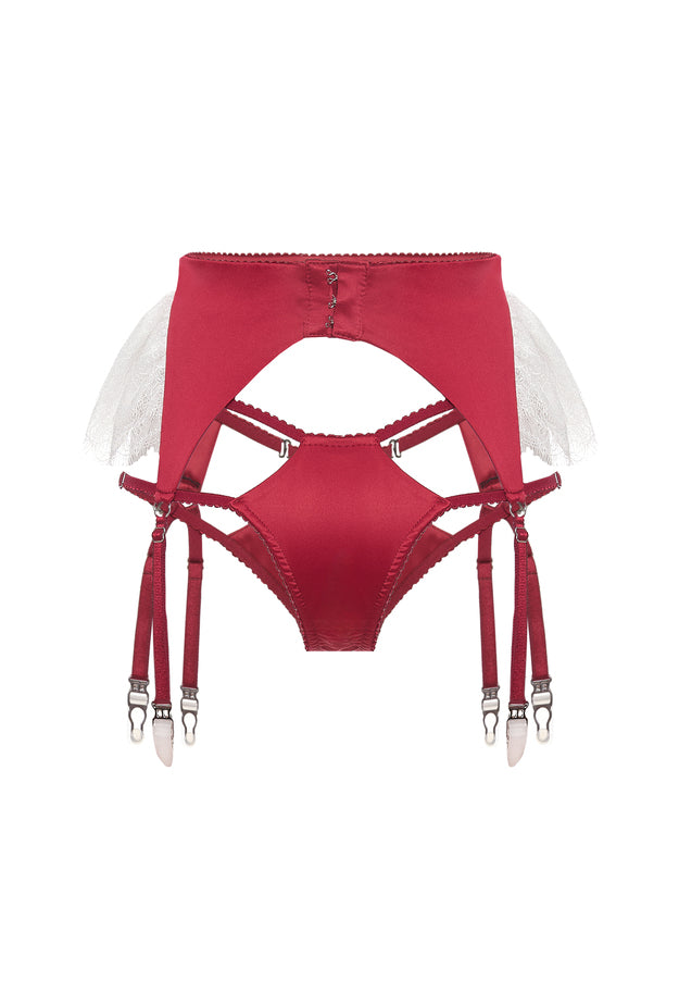 Гартер "Lait Rouge" від Nomura — це завершальний штрих до ідеального образу. Червоно-молочна кольорова гама додає елегантності, а тонкі деталі мережива роблять гартер візуально легким, проте вражаючим.