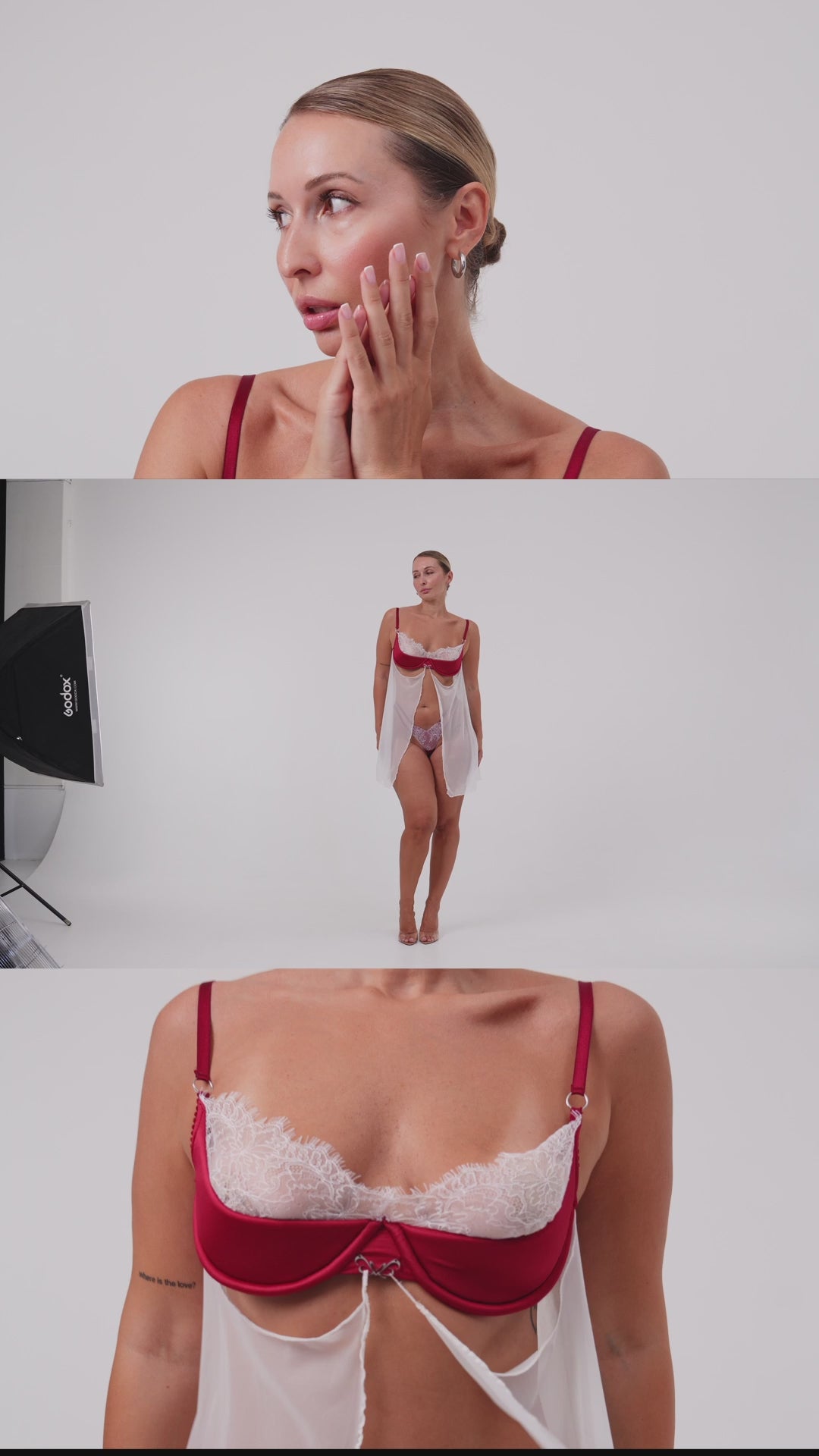 Пеньюар "Velum" у червоному кольорі — це смілива класика еротичної білизни. Прозора тканина шифону ніжно огортає тіло, створюючи напіввідкритий силует, який водночас приховує й зваблює.