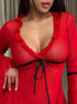 Витончений комплект із тонкого мережива у насиченому червоному відтінку створений, щоб підкреслити жіночність та граційні лінії тіла.